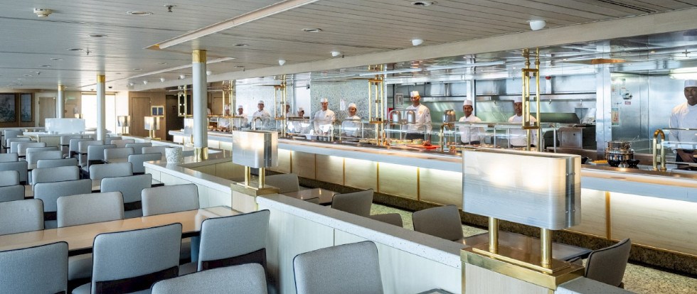 Dominant le Grand Foyer, le Bar Océan est le lieu parfait pour danser sur les musiques de notre orchestre tout en dégustant l’un des délicieux cocktails préparés par nos barmen experts pour l’apéritif ou pour finir la soirée. Disposant de grandes baies vitrées, vous ne manquerez rien des paysages qui défileront sous vos yeux.