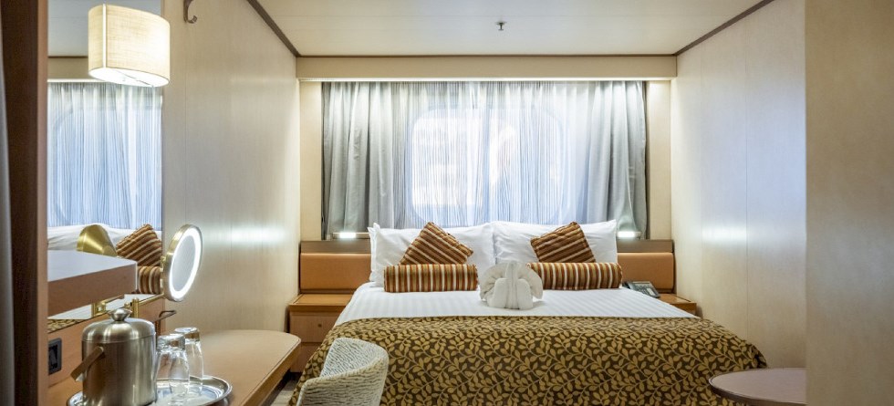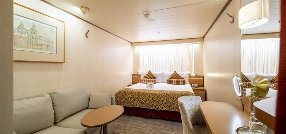 Superficie : 17 m² - La cabine dispose de : Deux lits bas, convertibles en grand lit - Sanitaires privés avec baignoire - hublots - Service de cabine dédié, deux fois par jour - Télévision avec chaînes françaises (selon réception satellitaire), films en français et chaîne d’information sur la navigation - Téléphone à accès direct - Coffre-fort individuel - Mini Bar - Sèche-cheveux - Climatisation à réglage individuel - Prises électriques 110/220 AC | Serviette de piscine et couverture de pont mises à disposition gratuitement - Peignoir à disposition pendant la croisière - Espace de rangement - Service de petit-déjeuner continental en cabine gratuit - Menu de service en cabine disponible de 10h à minuit - Service de blanchisserie et de repassage. Certains services font l’objet d’un supplément. Veuillez nous consulter.