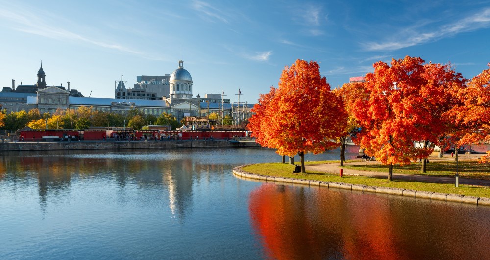 Nous passerons dans le Vieux Montréal, où vous apercevrez Notre-Dame de Montréal avec son extérieur néogothique (entrée non incluse). Ses ornements intérieurs en font l’un des plus beaux sites religieux québécois. Petite anecdote : Céline Dion y a célébré son mariage en 1994. Vous découvrirez également la Place Royale, la plus ancienne de la capitale. Vous descendrez ensuite vers le Vieux Port et le célèbre marché Bonsecours. Ce magnifique édifice a été de nombreuses années l’emblème de la ville de Montréal en abritant l’hôtel de ville et le Parlement du Canada-Uni. Nous continuerons la route vers le Quartier International qui a été entièrement revitalisé en 2000. Montréal a reçu plus de 20 prix internationaux de design et d’urbanisme. Poursuite en direction du Quartier des Spectacles, qui accueille une trentaine de salles de spectacles. En vous y promenant le soir, vous serez émerveillés par les illuminations qui font briller entre autres le Monument National, le Club Soda, le Métropolis, le Théâtre du Nouveau-Monde… Vous irez également sur la Place des arts, siège de l’Orchestre Symphonique et de l’Opéra de Montréal, et découvrirez le quartier de Chinatown, qui font la richesse de Montréal. Enfin, vous vous rendrez au Mont-Royal, avec ses 234 m d’élévation et son lac, pour profiter d’une vue panoramique sur le Saint-Laurent et les montagnes environnant. C’est ce mont qui a donné son nom à la ville.