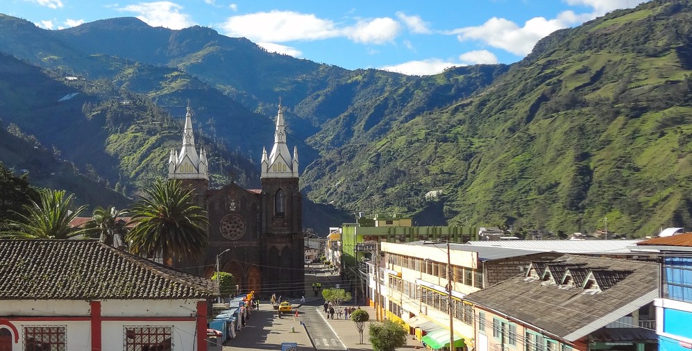 Petit-déjeuner. Départ pour Puyo, capitale de la province de Pastaza, au climat humide caractéristique. Visite d’un atelier d’artisanat en balsa et dégustation de l’eau-de-vie de canne à sucre. Déjeuner en route. Poursuite vers Baños, charmante ville thermale nichée à 1800m d’altitude, au pied du Volcan Tungurahua. En chemin, arrêt au Pailon del Diablo, impressionnante chute d’eau nichée dans une gorge, accessible par un sentier. A Baños, balade à pied : découverte de l’église Virgen de Agua Santa, des rues animées, dégustation de melcocha (guimauve artisanale) et visite d’ateliers de tagua (ivoire végétal). Route vers Riobamba, au pied du Volcan Chimborazo (6 263m), plus haut sommet d’Equateur. Ville historique surnommée la « Sultane des Andes », elle offre des panoramas spectaculaires et une riche histoire ferroviaire. Dîner. Nuit à l’hôtel.