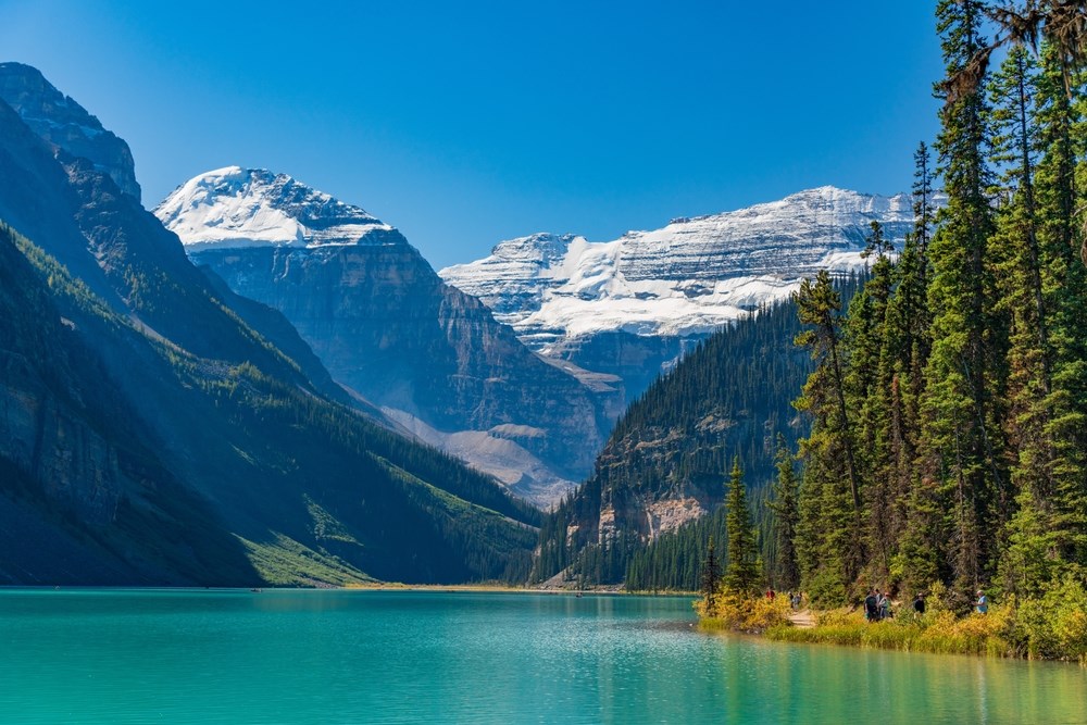 Traversée du parc de Jasper pour emprunter la Promenade des Glaciers « le Columbia Icefield Parkway », l’un des itinéraires les plus pittoresques du monde (230 km). Elle offre des vues panoramiques sur une centaine de glaciers, des chutes d’eau impressionnantes et les eaux turquoise de lac Bow. Découverte de l’iconique Lake Louise aux eaux émeraude, une des merveilles du Canada. Après-midi continuation vers Banff National Park, un ensemble de vallées, montagnes, glaciers, forêts, prés et rivières. Vous verrez le mont Cascade, les chutes de la rivière Bow, les lacs Minnewanka d’origine glaciaire et Two Jack. Le site compte aussi des douzaines d’espèces de mammifères dont le coyote, le cougar, le loup, le lynx du Canada, l’ours noir, le grizzly. Découverte de Banff Avenue. (P.déj-Déj).