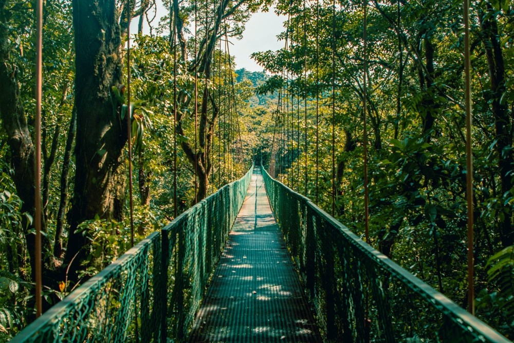 Départ pour une randonnée au plus proche du volcan Arenal, qui est la réserve privée Arenal 1968. Située juste à côté du parc national, elle offre des vues impressionnantes sur le volcan Arenal et les champs de lave. Ce parc doit son nom à l'éruption du volcan Arenal de 1968, l'un des événements les plus importants et les plus cruciaux de l'histoire du Costa Rica. Le sentier de la coulée de lave de 1968 est extrêmement intéressant pour les voyageurs, car ce n'est pas souvent qu'ils ont l'occasion de faire une randonnée sur la lave solidifiée ! Déjeuner. Traverser la canopée de la forêt, et la voir depuis les hauteurs, est une expérience extraordinaire. On trouve des ponts suspendus dans de nombreuses régions du Costa Rica, mais les plus élaborés se trouvent dans la ville de La Fortuna. On y trouve plus de 350 espèces d'oiseaux, et, plus de 700 espèces de plantes. Dîner libre.