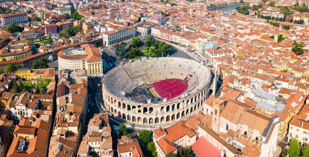 Petit déjeuner. Départ vers la Vénétie. Déjeuner à Vérone et rencontre avec votre accompagnateur qui restera avec vous jusqu’au déjeuner du J 5. Visite guidée de Vérone « ville rose», un véritable joyau (UNESCO), une histoire romantique de Roméo et Juliette mais aussi les Arènes, splendide amphithéâtre du 1er siècle après J.C., l’un des plus grands du monde romain - 25000 spectateurs ! Dîner et logement à Cittadella, hôtel 4*