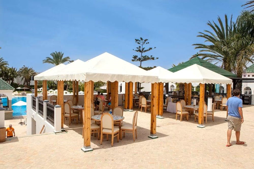 • Restaurant principal intérieur avec une partie en terrasse ombragée.• Restaurant à la carte de spécialités marocaines "Le Narjis" (ouverture 6 fois par semaine : avec supplément et sur réservation).