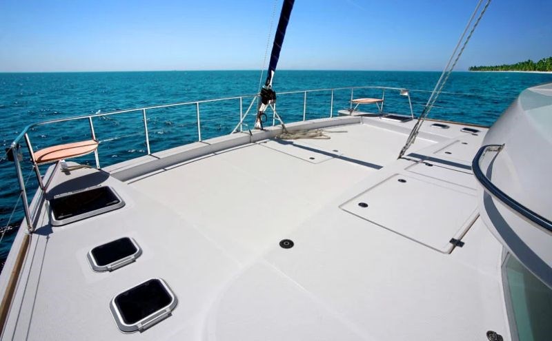 -Les cabines : Le catamaran compte 3 cabines avec lit double, 1 cabine avec 2 lits simples ou 1 lit double et 2 cabines triples. Chaque cabine est dotée de ventilateur, de panneau de pont ventilation, d’espaces de rangement, de liseuses individuelles, d’une salle d’eau privative avec douche, lavabo, miroir, petite armoire, panneau de pont ventilation et WC, et d’un vaste hublot panoramique.