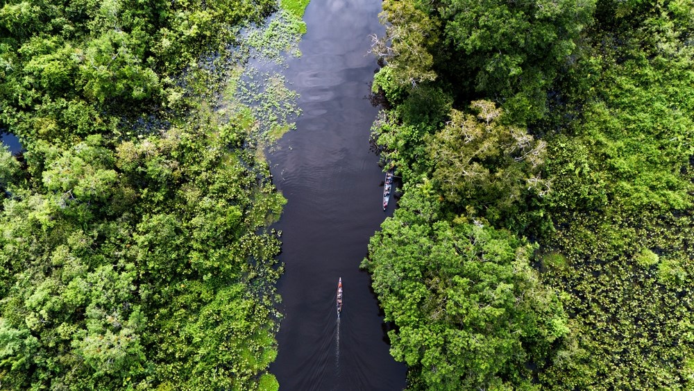 Le matin, départ à pied jusqu’à une tour d'observation construite dans un kapokier géant millénaire. Son sommet offre une vue imprenable à 360° sur la canopée de la forêt amazonienne se déroulant à l’infini. Après le déjeuner à bord, promenade dans la forêt primaire en compagnie de votre guide naturaliste afin de repérer les différentes espèces végétales et animales endémiques de cet écosystème, l’occasion d’apercevoir peut-être l’étrange hoazin, une espèce très rare d’oiseau connu aussi sous le nom de « stinkbird » (oiseau puant). Dîner et nuit à bord.