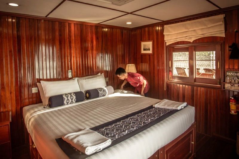 R/V Angkor PandawCe petit bateau, construit en 2012 dans un chantier de Saïgon, permet d’approcher au plus près des rives du fleuve Rouge. Son faible tirant d’eau lui permet de naviguer aussi bien dans la baie d’Halong que sur le fleuve Rouge et les rivières Lo et Da où le débit peut fortement varier.