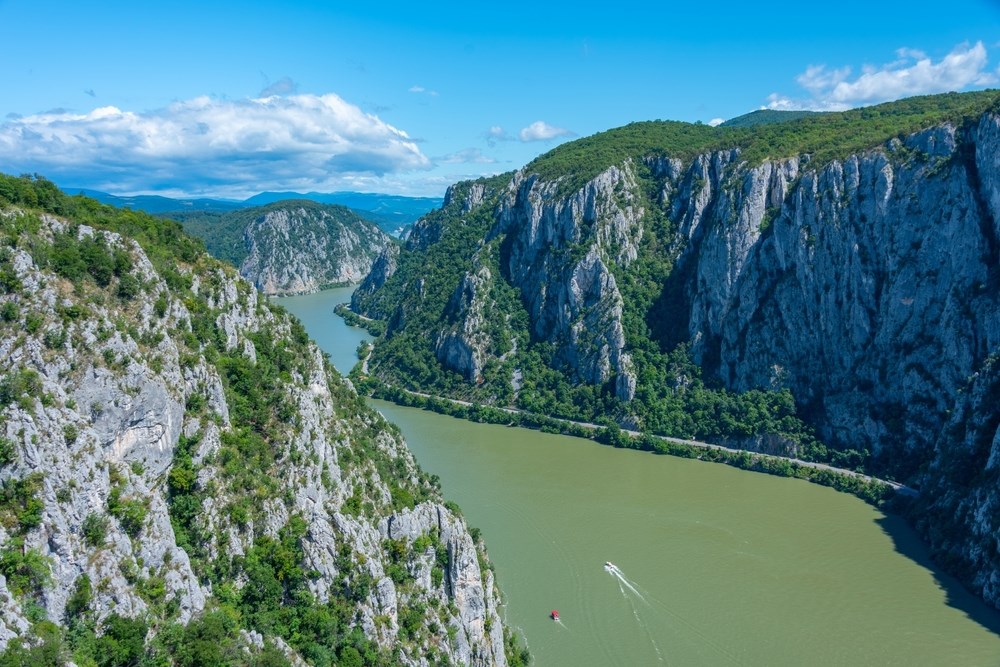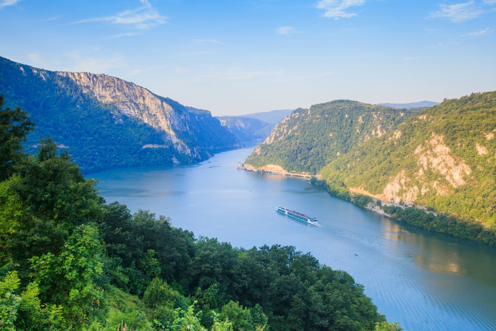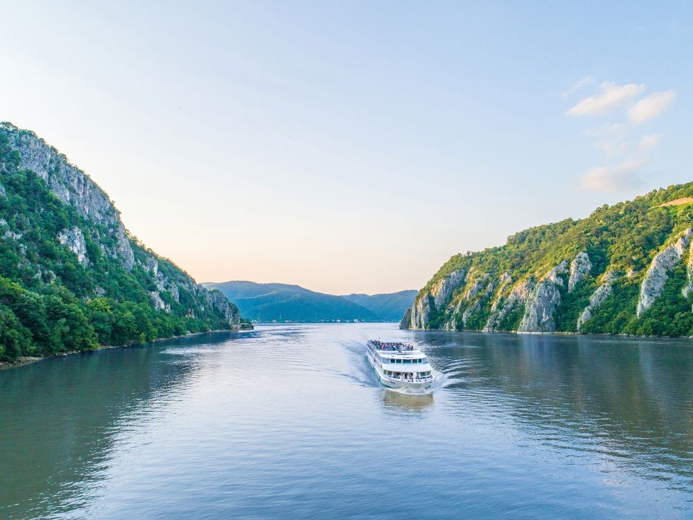 Journée de navigation entre Roumanie, Bulgarie et Serbie. Passage spectaculaire des Portes de Fer, notamment le défilé des « Chaudières ».