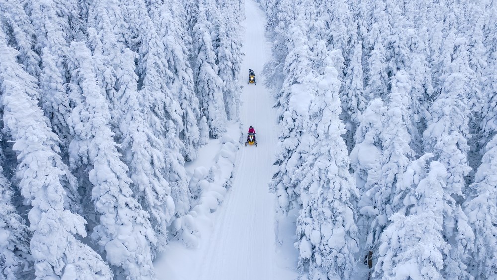 Si vous êtes en quête d’aventure, faites l’expérience d’une sortie nocturne en motoneige à la lumière de vos phares.