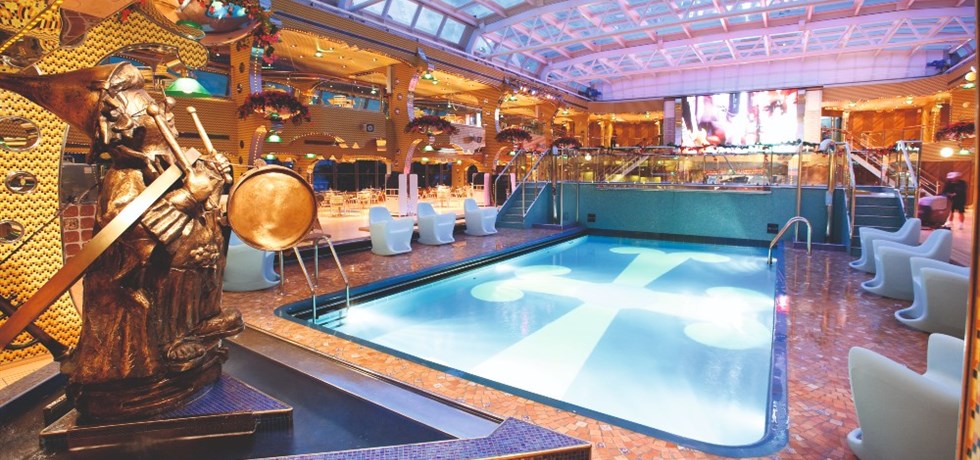 Les animations et équipements du navire : piscine, serviette de bain, chaise longue, gymnase, bains à hydro massage, sauna, bibliothèque, discothèque …