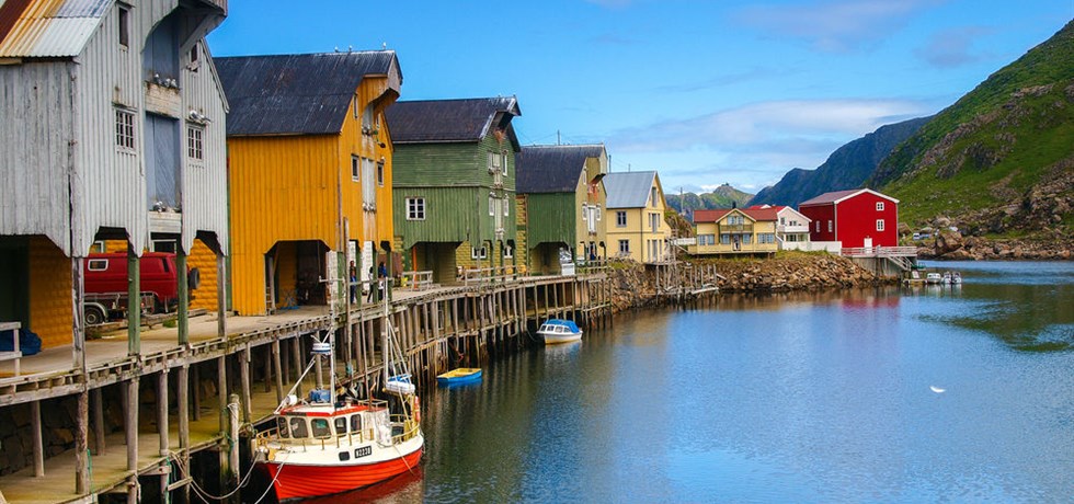 - Commencez l'été au nord : le soleil encore haut à minuit au Cap Nord, des prairies très vertes avec des sommets enneigés qui se reflètent sur l’eau