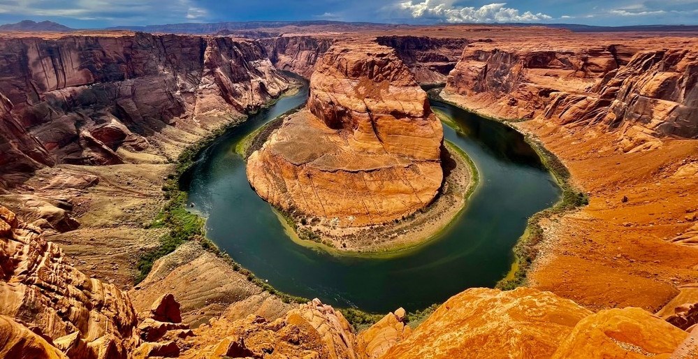 Situé à 1800 mètres d'altitude, le panorama domine la rivière Colorado s'écoulant 600 mètres plus bas et qui est entourée de canyons rouges et verts.