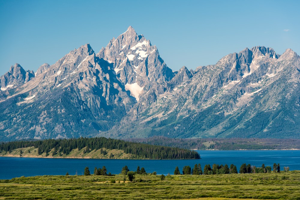 Ce parc offre dès le premier regard un paysage éblouissant. Une chaîne de montagnes, les tétons, surgit au-dessus d'une vallée glaciaire au fond de laquelle serpente la Snake River et où s'étendent trois lacs d'un bleu extraordinaire. Sur les pentes recouvertes de pins, de grands troupeaux d'élans paissent tranquillement, partageant leur territoire avec les cerfs et les ours bruns. Les lacs attirent de nombreux oiseaux : cygnes, pélicans, canards et oies sauvages, mais le plus prestigieux du parc est l'aigle à tête chauve.