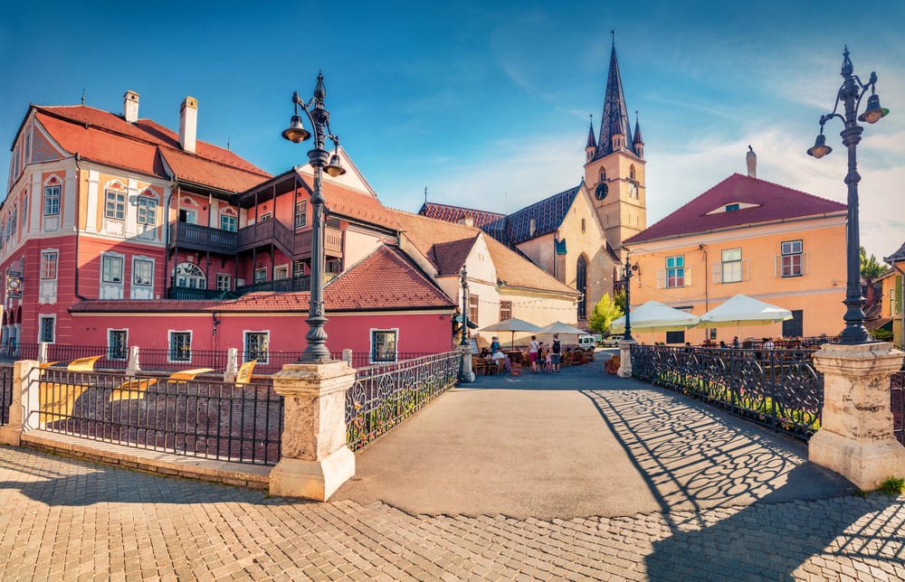 Petit-déjeuner à l’hôtel. Départ vers Sighisoara. Visite guidée de SIGHISOARA. Classée au patrimoine mondial de l’UNESCO, Sighisoara est la seule ville médiévale roumaine encore habitée. Elle fut construite en 1191 par les colons saxons et a conservé intacte sa citadelle. La citadelle abrite notamment la Tour de l’Horloge (XIVe siècle) qui abrite aujourd’hui le musée de la ville, l’église de la Colline en style gothique à laquelle on accède par l’escalier de l’école et ses 175 marches en bois et la maison natale du comte Vlad Tepes, dit Dracula. Ces ruelles étroites lui confèrent un charme intemporel plongeant le visiteur au cœur du Moyen-Age. Route vers Sibiu avec arrêt pour visiter l’église fortifiée de Biertan, fondée par les colons saxons de Transylvanie et classée par l’UNESCO. Déjeuner dans un restaurant local puis continuation vers Sibiu. Visite guidée à pied de SIBIU. Berceau de la civilisation saxonne en 1150, la cité médiévale de Sibiu (anciennement Hermannstadt) fut dotée de 39 tours de défense afin de faire face aux invasions turques. De nos jours, c’est la plus grande ville de Transylvanie. Découverte extérieure du Palais Brukhental construit en 1787 dans le style baroque, abrite aujourd’hui un passionnant musée de peintures, livres et objets d’art de grande valeur. Dans le cœur historique de la ville se trouve également la Tour du Conseil, l’Hôtel de Ville, l’Eglise évangélique, le pont des mensonges, le passage des escaliers reliant la Ville Haute à la Ville Basse. Installation à l’hôtel, dîner.