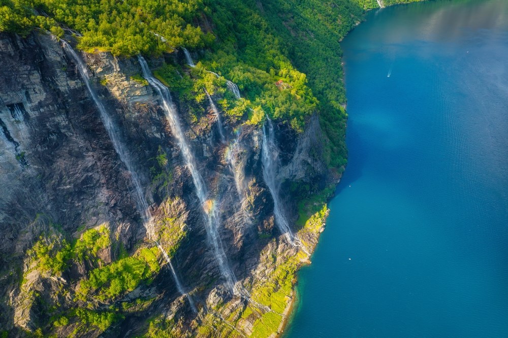 Petite traversée pour rejoindre Andalsnes. Puis, montée de la Route des Trolls, l'une des attractions les plus impressionnantes de Norvège. Cette route sinueuse avec 11 virages à flanc de montagne grimpe jusqu’à Stigrora, à 858 m d’altitude. Continuation vers Linge pour une petite traversée. Route vers Geiranger en empruntant la Route des Aigles. Embarquement pour une croisière d’1 h. sur le Geirangerfjord l'un des fjords les plus étroits et les plus impressionnants de la Norvège, dominé par une énorme paroi rocheuse d'où se précipitent de magnifiques cascades dont les 2 plus célèbres : « les Sept Sœurs " ou " le Voile de la Mariée ». Route vers Videsæter et Stryn. (P.déj-Déj-Dîn).