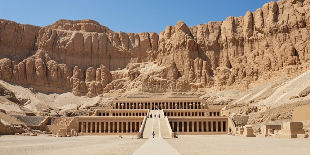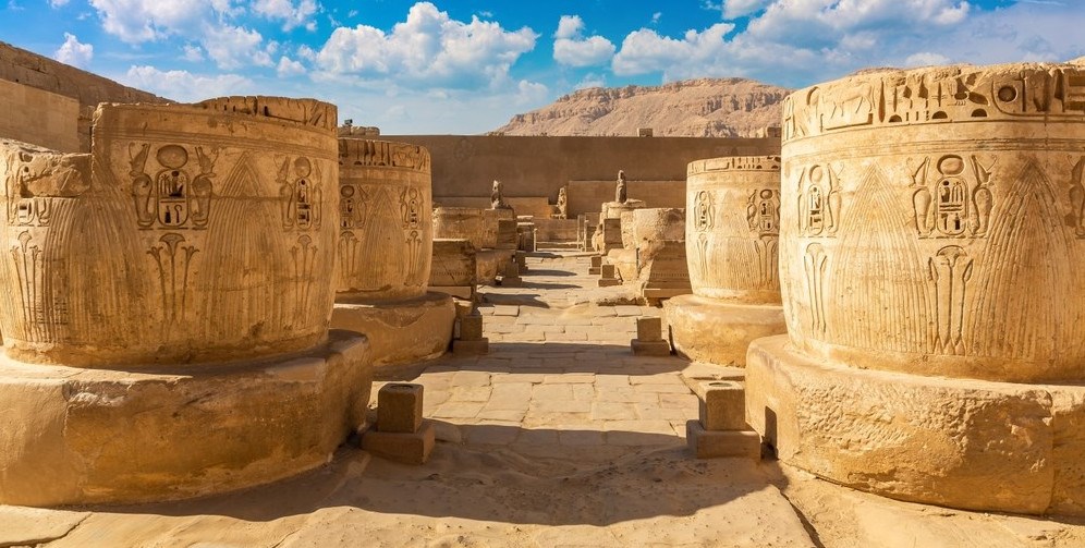 Matinée en navigation vers Louxor. Conférence sur l’Égypte moderne. Déjeuner à bord. Visite du temple de la Reine Hatshepsout, la seule femme ayant régné sur l’Egypte et du temple funéraire de Ramsès III à Medinet Habou, l’un des mieux conservés sur la rive ouest du Nil. La qualité de ses couleurs et les scènes des parois du temple sont uniques et en font une visite majeure.