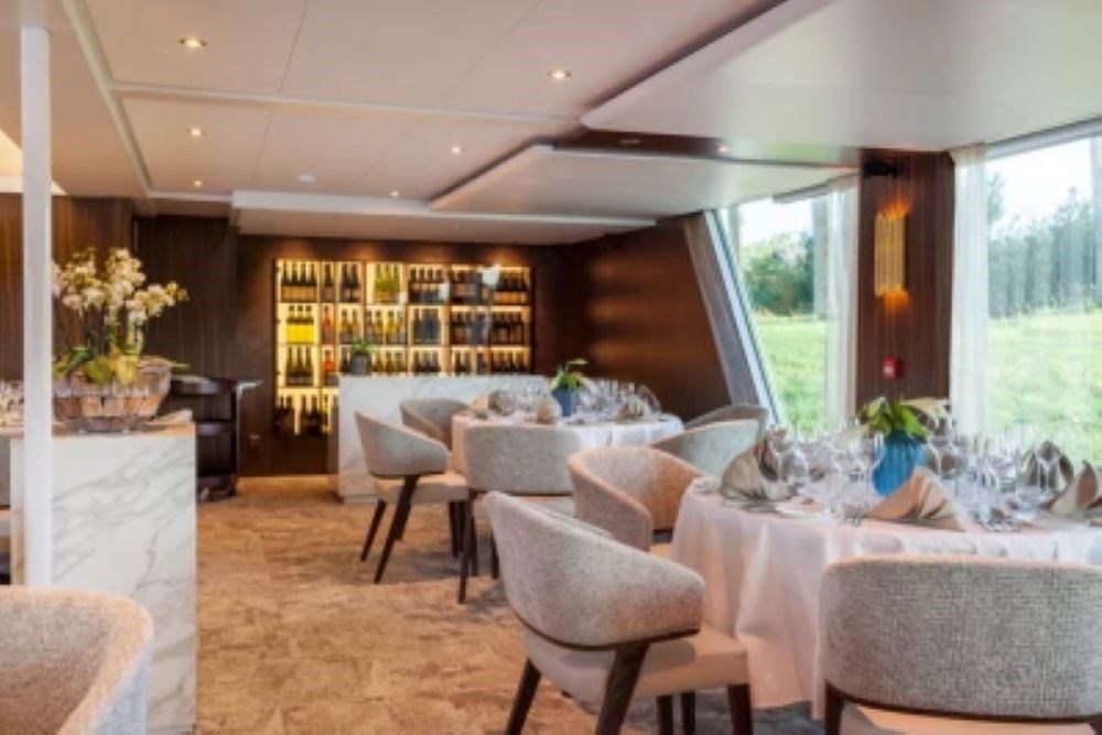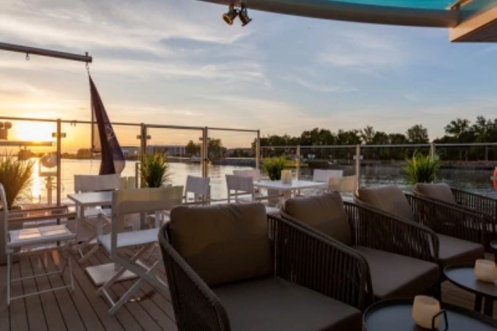 Les espaces communs sont vastes et baignés de lumière naturelle grâce à de larges baies vitrées. Le navire dispose d’un restaurant panoramique où tous les repas sont servis en un seul service, dans une ambiance raffinée. La cuisine proposée est internationale et soignée. Le Panorama Bar, situé à l’avant, ainsi que le salon lounge à l’arrière du navire, constituent des lieux privilégiés pour se détendre, échanger ou profiter du paysage au fil de l’eau. Le pont Soleil est aménagé avec des chaises longues et des espaces de repos, idéals pour admirer les rives du Danube.