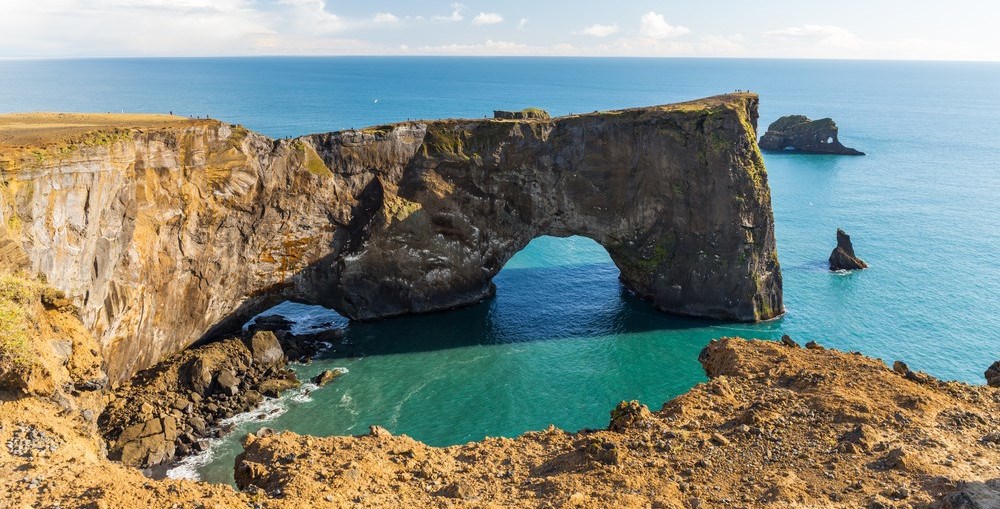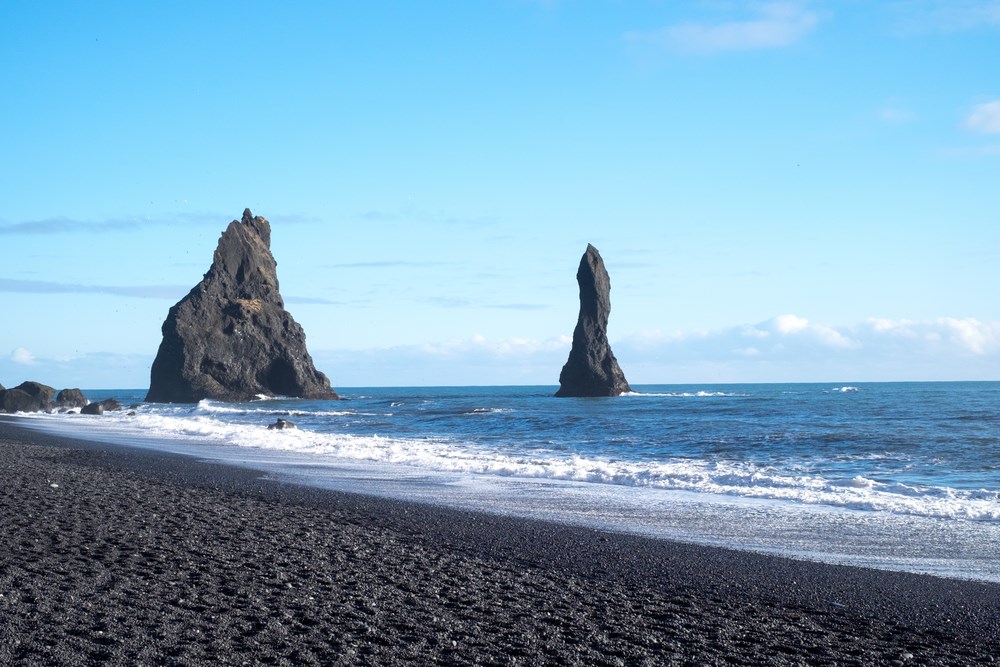 Départ vers la côte Sud. Premier arrêt pour découvrir la cascade de Seljalandsfoss puis continuation vers Skogafoss, avec arrêt photo au volcan au nom imprononçable dont l´éruption a eu lieu en 2010. La cascade de Skogafoss tombe d’une hauteur de 60 m, que le vent fait onduler et qui se pare parfois d’un magnifique arc-en-ciel. Continuation vers la pointe sud. Découverte de la plage noire de Reynisfjara et ses formations géologiques naturelles : d’immenses colonnes de basalte qui forment une pyramide rocheuse. La légende dit que chaque roche est en fait un troll qui se transforme en pierre lorsqu’il est frappé par la lumière du soleil. Arrêt devant le Dyrhólaey, un immense pilier massif de lave sombre qui s’étend sur 120 m dans la mer. Arrivée au village de Vík, petite bourgade de moins de 300 habitants ! (P.déj-Dîn).