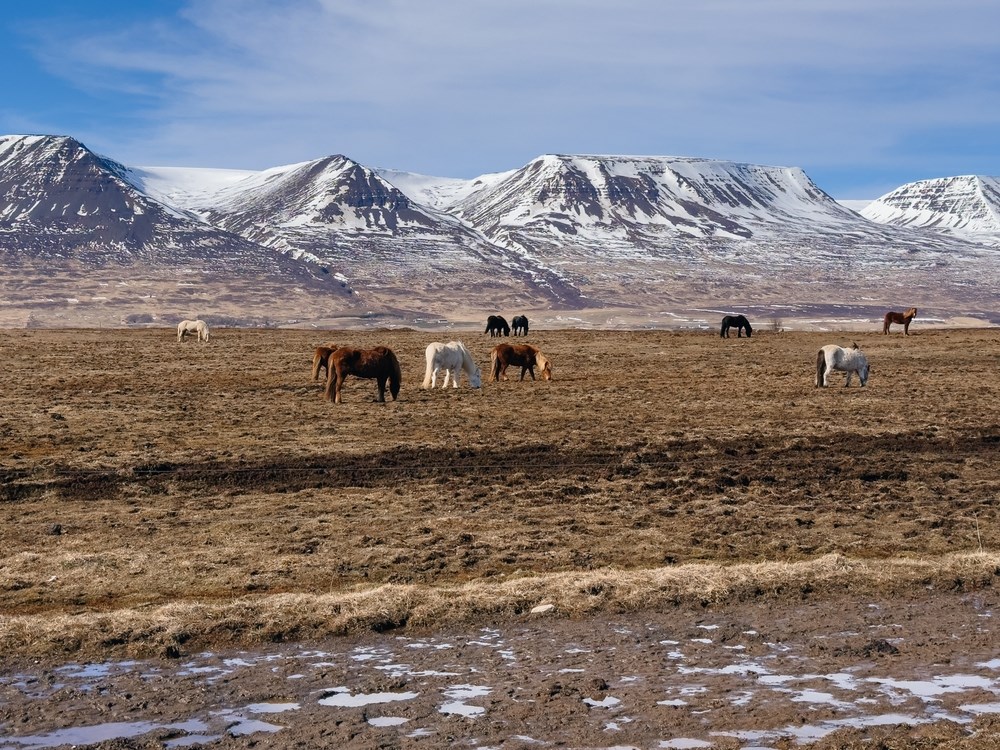 Route vers Akureyri en passant par Godafoss, les chutes de Dieu. Arrivée à Akureyri, la capitale du Nord, située à seulement 100 km du cercle arctique. Rapide tour de la seconde plus grande ville du pays, nichée au fond du fjord. Remontée le long du fjord Eyjafjörður par l’Ouest jusqu’à Hauganes. Visite du petit village de pêcheurs et de son usine de poisson, aujourd'hui l'une des dernières à toujours produire de la morue salée. Vous en apprendrez plus sur l'industrie du poisson en Islande tout en profitant de la visite gustative : morue, requin séché, schnaps. Poursuite le long de la péninsule nord via des petits villages de pêcheurs plus charmants les uns que les autres, dont Ólafsfjörður et Siglufjörður. Visite du musée Glaumbær, une ancienne ferme en tourbe du XVIIIe siècle, qui possède une collection d'objets d'art et dont une partie est en plein air. Vous y découvrirez le patrimoine historique, culturel, et architectural islandais dont des maisons en toit de tourbe. Continuation vers les terres des chevaux islandais – Skagafjördur. La plupart des fermes sont situées ici. Cheval des Vikings, habitué à la vie sauvage et indépendant depuis des centenaires. Puisant sa force dans la nature il ne craint ni la pluie, ni le vent. (P.déj-Dîn).