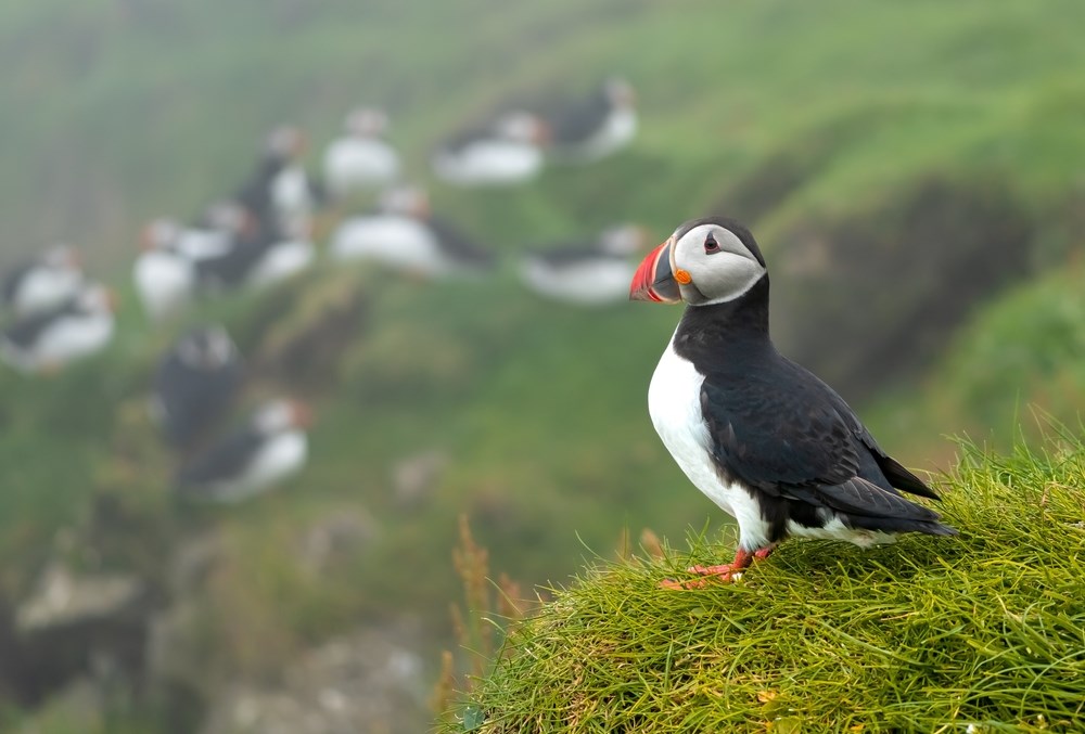 Ce matin, accompagné avec votre guide, découvrez Tórshavn, la capitale de l’archipel. Visitez le cœur historique de la ville, Tinganes, où le premier parlement s’est formé en 825 à l’époque des vikings. Ce petit centre charmant alterne maisons en bois peintes en rouge, maisons de pierre et toits en gazon. Vous vous baladerez dans le vieux quartier de Reyn et ses adorables bâtiments en bois. Et ferez un tour au petit fort de Skansin qui protégeait l’île contre les raids de pirates au XVIIe siècle. Déjeuner libre au centre-ville de Tórshavn. Puis départ pour Vestmanna pour une excursion en bateau vers les falaises aux oiseaux de Vestmanna. Le bateau navigue dans les grottes de la côte, longeant les falaises, passant entre les piliers et arches rocheuses. Vous êtes alors au pied des falaises hautes de 700 m où des milliers d’oiseaux se rassemblent : sternes arctiques, guillemots, fulmars, mouettes, pétrels, et les adorables macareux aux couleurs si jolies… Au retour, vous ferez un arrêt au village de Kirkjubøur, un des lieux les plus importants des îles Féroé. Ici, vous pourrez voir les ruines de l’église St Olav datant du XIIe siècle et Roykstovan, une ferme vieille de 900 ans. (P.déj).