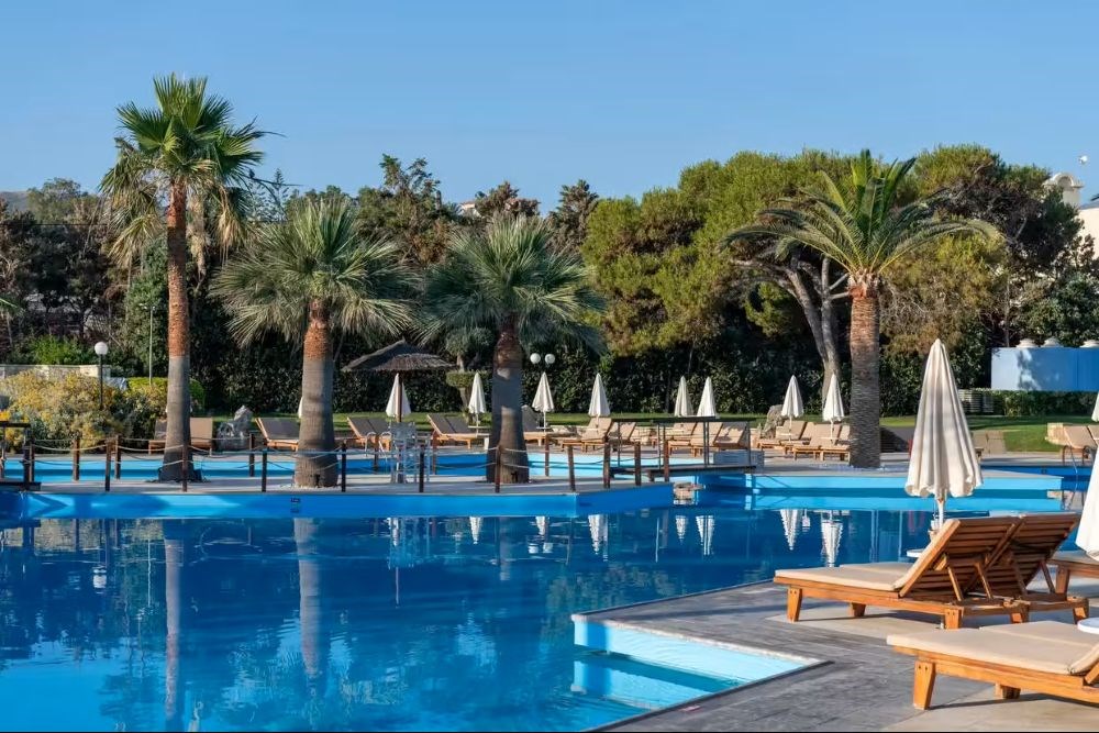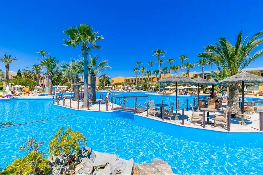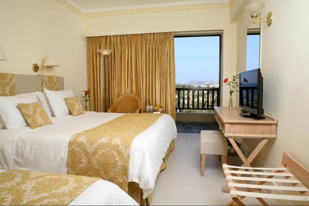 L'établissement est composé de 512 chambres réparties dans 5 bâtiments (avec ascenseur). Les chambres sont décorées dans un style classique avec vue jardin ou vue mer.