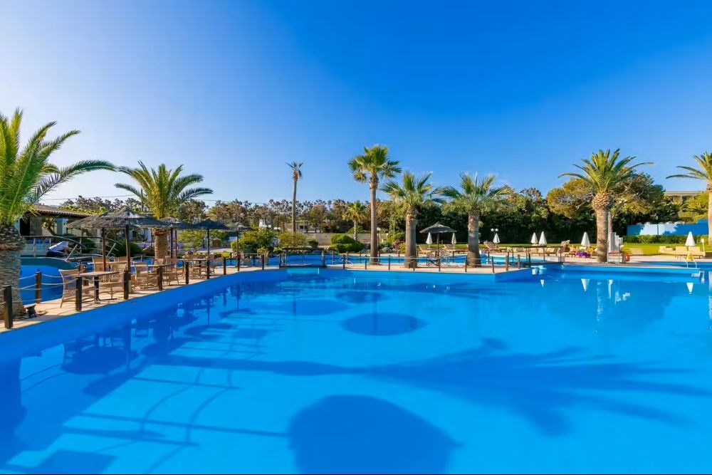 - 2 piscines extérieures d'eau douce (340 m² et 165 m², de 0,6 m à 2,30 m de profondeur avec zone adaptée pour les enfants) et aménagées avec chaises longues et parasols