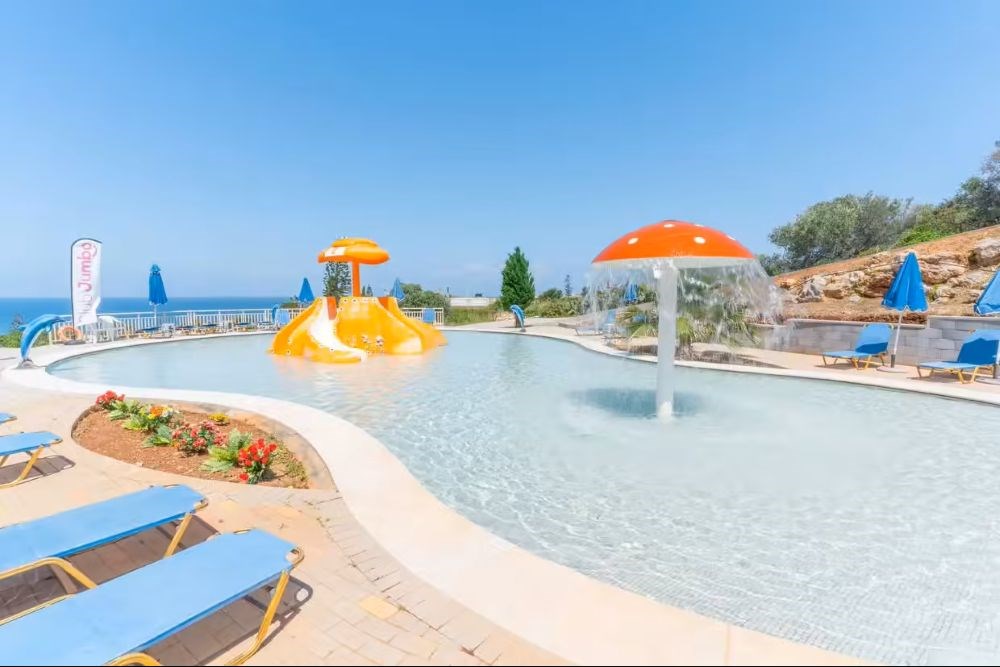 Les enfants de 4 à 12 ans sont nos super héros ! Activités encadrées par notre animateur Jumbo francophone, 6 j/7 en vacances scolaires françaises de printemps et de juillet/août, de 9h30 à 12h30 et de 14h30 à 17h30. On s'amuse, on rit et on se fait de nouveaux copains autour d'un programme ludique et fun encadré par notre animateur Jumbo francophone attentionné. Grand jeu, sports, veillée 1 fois/semaine, activités créatives et mini-disco tous les jours… Vive les vacances !- Piscine enfants avec toboggans aquatiques.