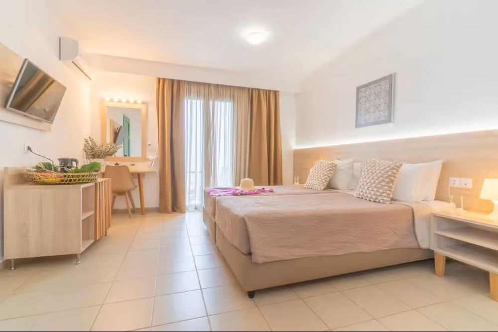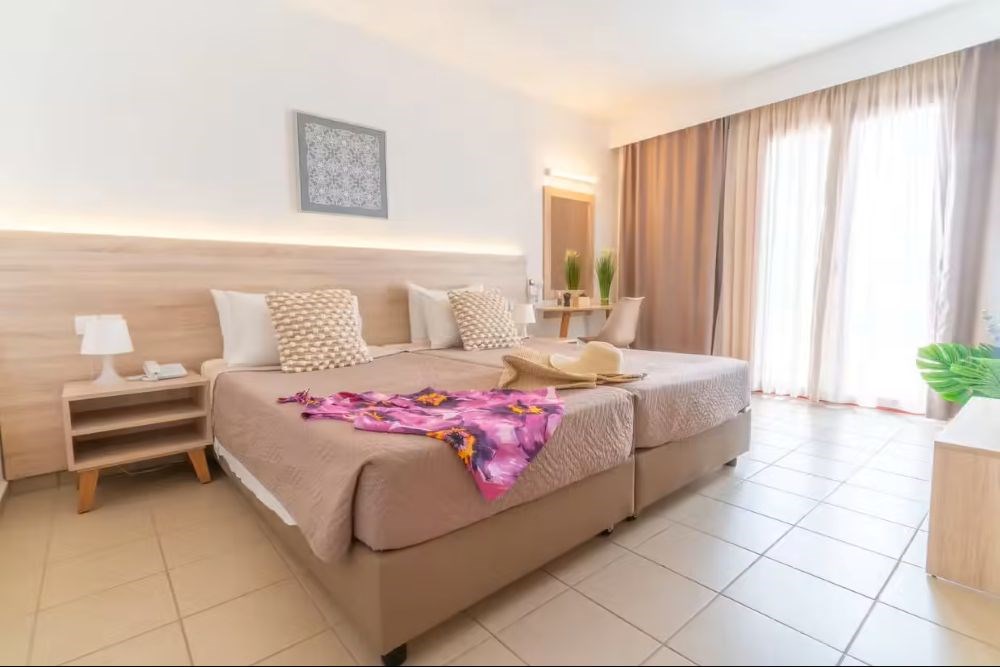 Le Jumbo Sunshine Village 4* vous accueille dans son établissement construit dans un style crétois authentique. Profitez de ses infrastructures de qualité : sa piscine, ses infrastructures sportives ou encore son espace bien-être, le tout à environ 850 m de la plage et à 500 m d'un parc aquatique. Idéal pour un séjour en couple, entre amis ou en famille, l'hôtel met également à votre disposition divers restaurants et bars pour tous les goûts.