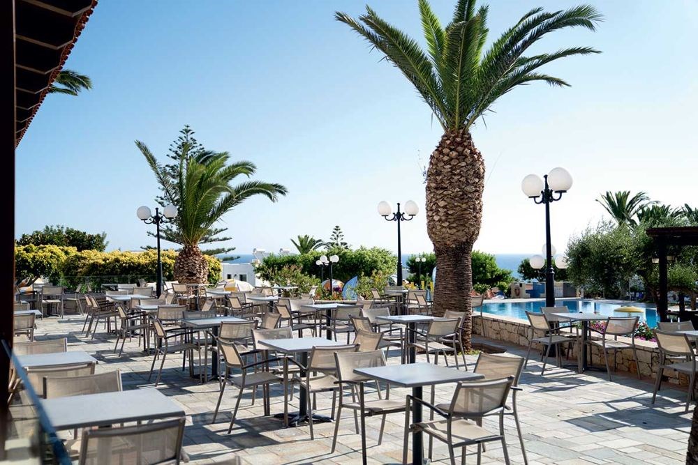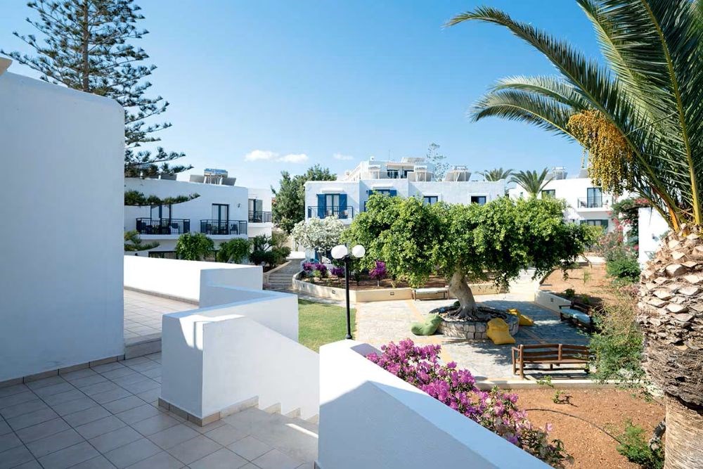 Le Chrissi Amoudia dispose de 225 chambres réparties dans un bâtiment principal de 2 étages et bungalows d’un étage, de style traditionnel crétois, disséminés dans un agréable jardin. Plage publique à environ 500 m.