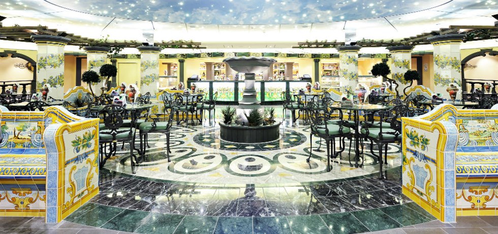 Le navire dispose également de 13 bars et lounge aux ambiances originales. Il est toujours possible de boire un verre, peu importe le moment de la journée. Goutez les délices de La Piazzetta. Avec son bar de crèmes glacées, son magasin de chocolat et de pâtisseries, les hôtes pourraient se croire au coeur d'une véritable Piazzetta italienne.