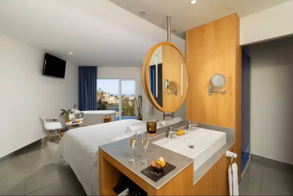 Profitez également de la Suite Leiro vue mer partielle (48 m²) ou encore la suite Leiro vue mer (48 m²), avec avantages exclusifs tels que départ ou arrivée privé et flexible. Bénéficiez d'un service de petit-déjeuner privé et exclusif, d'une priorité pour les réservations au restaurant et sur les lits balinais de la piscine, ainsi que priorité pour les réservations de yacht. Ces suites peuvent accueillir jusqu'à 2 adultes. Des options variées pour répondre à toutes vos envies d'évasion, face à la mer Méditerranée.