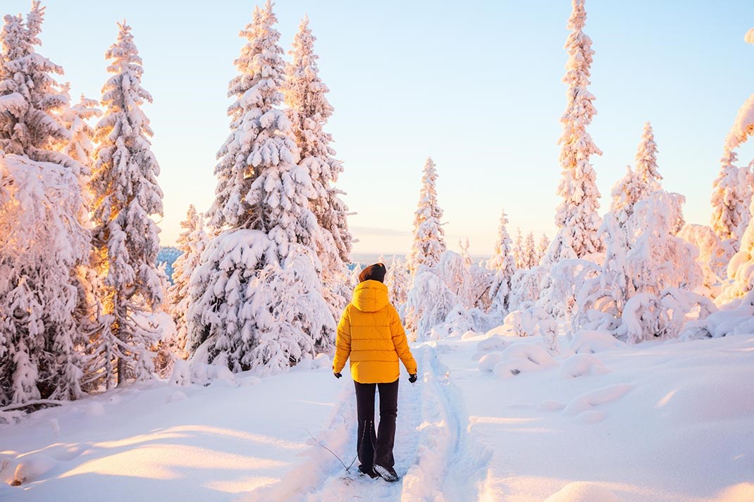 Place aux découvertes personnelles ! Profitez des raquettes à votre disposition pour une balade au grand air. Notre représentante vous donnera toutes les indications techniques concernant leur utilisation ainsi que des explications sur les différents circuits pour vous aventurer en toute sécurité (sans guide). Voici une excellente façon de découvrir les vastes espaces vierges de la nature finlandaise, de profiter de l’air pur et de faire un peu d’exercice ! Départs de circuits tous niveaux à 5 mn à pied de l’hôtel : Kätkätunturi, colline qui vous offre une vue imprenable sur le lac et la station de Levi ; Levitunturi, colline depuis laquelle vous pourrez admirer l’immensité de la Laponie ; les lacs gelés où vous pourrez repérer les différentes traces dans la neige des lapins arctiques, rennes, etc. Avec supplément, profitez de la station de Levi et de ses commerces, bars et restaurants, sans oublier son centre d’activités sportives avec 17 piscines, saunas et jacuzzis : le spa Levitunturi. Ou encore, allez à Lainio où se trouve le célèbre village de glace, expérimentez le karting sur glace, testez le fat bike, ce vélo à pneus surdimensionnés, ou profitez des pistes à disposition des skieurs et snowboardeurs. A noter qu’elles restent éclairées à la tombée du jour, une expérience unique !