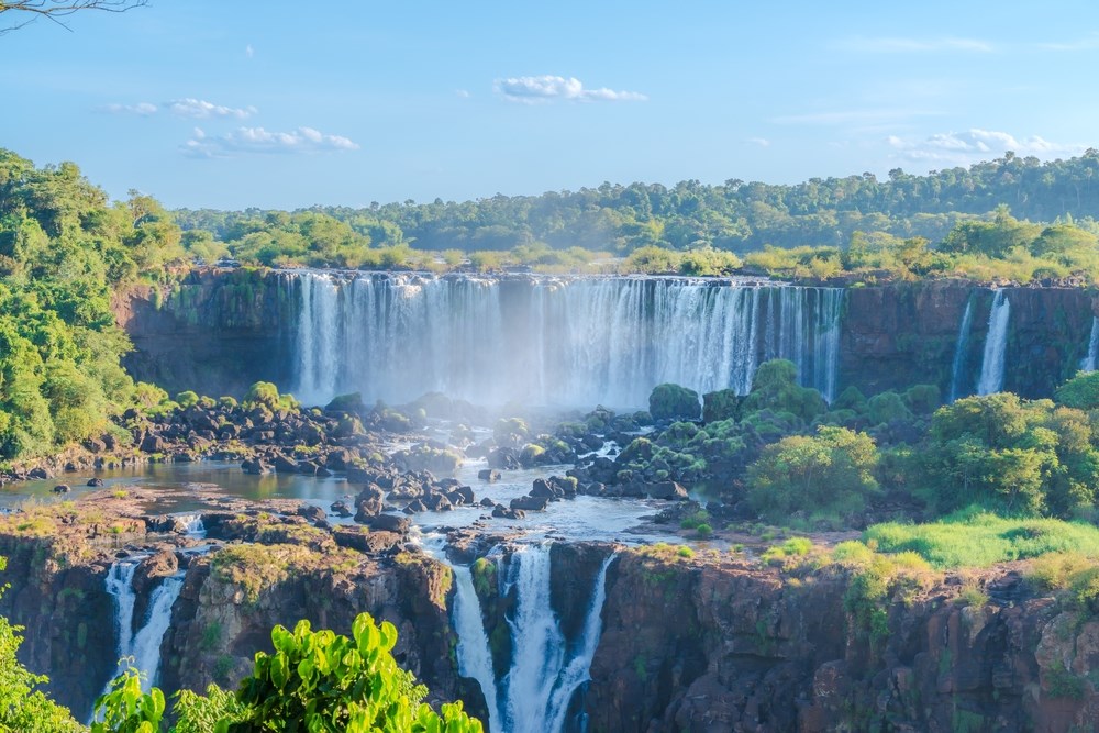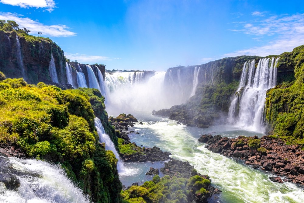 Assistance francophone pour votre connexion à Sao Paulo. Arrivée à Iguazu et accueil par votre guide local francophone. Découverte des chutes côté brésilien. Plus de 250 cours d'eau surgissant de la forêt forment une myriade de cascades de tailles diverses créant un tableau unique. Transfert à l’hôtel. (P.déj-Dîn).