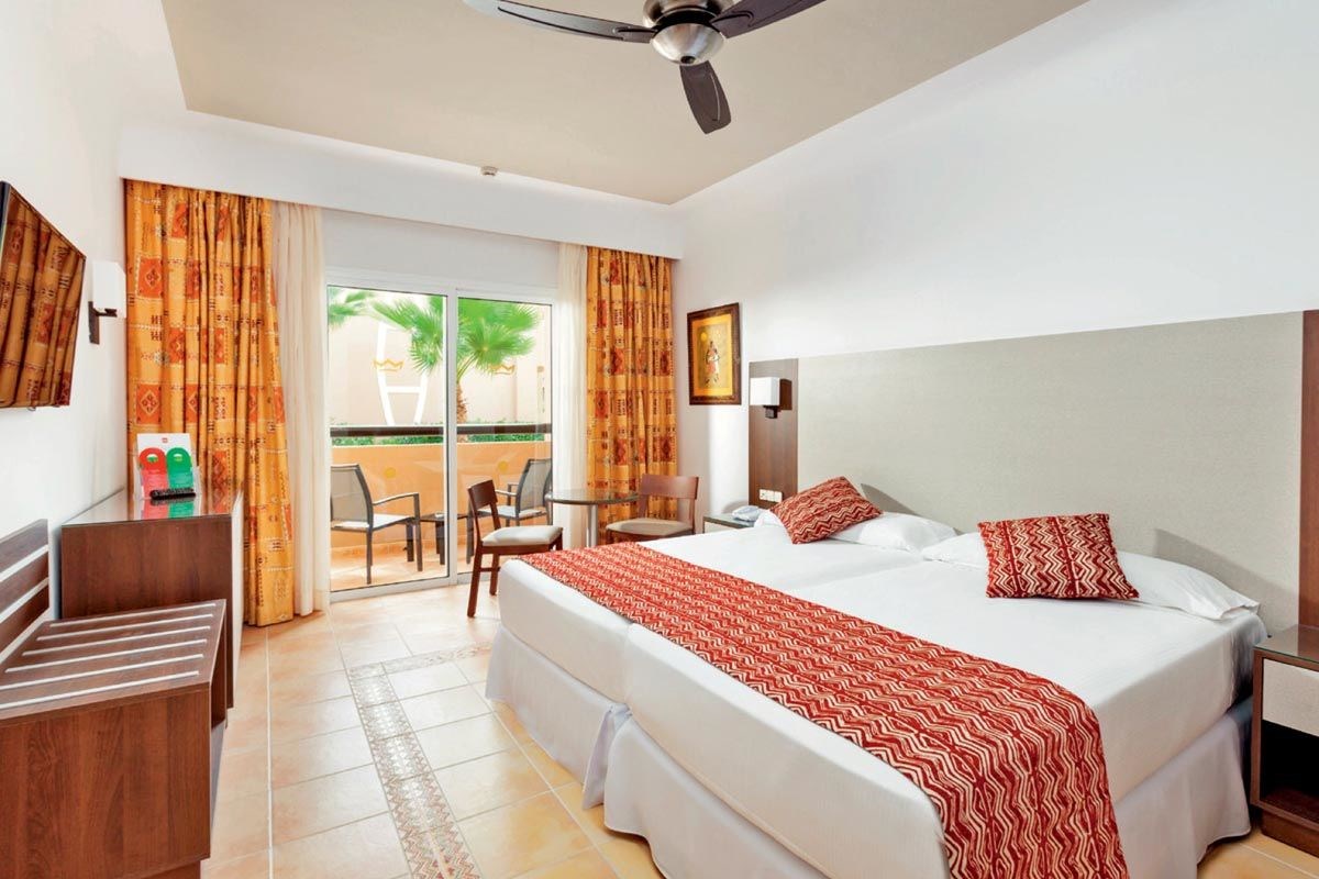 Les chambres disposent de salle de bains ouverte sur la chambre (douche/WC), sèche-cheveux, air conditionné centralisé, ventilateur au plafond, TV/satellite, Wi-Fi, mini réfrigérateur, bouilloire, coffre-fort, balcon ou terrasse vue jardin ou piscine selon disponibilité. Lit d’appoint (en standard), canapé-lit (135 x 200 cm) pour les 3e et 4e personnes. - Chambres standard : env. 26 m², 1-3 pers. (2 adultes + 1 enfant ou bébé ou 3 adultes), 2 lits simples (110 x 200 cm) ou 1 grand lit (180 x 200 cm). Communicantes standard : env. 52 m², 4–6 pers., max. 2 adultes et 1 enfant ou 1 bébé par chambre.- Grandes chambres : env. 30 m², 1-4 pers. (max 3 adultes + 1 bébé ou 2 adultes + 2 enfants ou bébés ou 2 adultes + 1 enfant + bébé), 2 lits simples, coin salon, canapé-lit. - Chambres supérieures : env. 33 m², 1-2 pers. et 1 bébé, 2 lits simples. - Suites : env. 41 m², 1-4 pers. (max 3 adultes ou 2 adultes + 2 enfants ou 2 adultes + 1 enfant ou bébé), chambre avec grand lit et salon séparé avec canapé-lit.