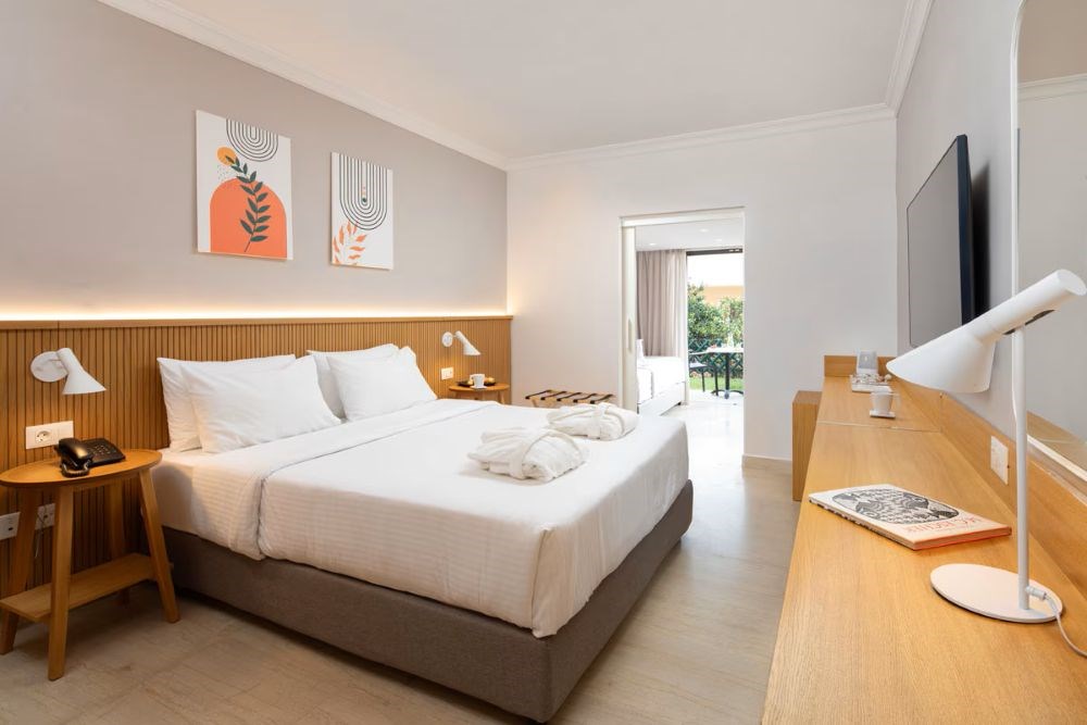 • 499 chambres réparties dans un bâtiment principal de 4 étages avec ascenseurs et dans différents petits bâtiments disséminés dans les jardins, toutes avec balcon ou terrasse.