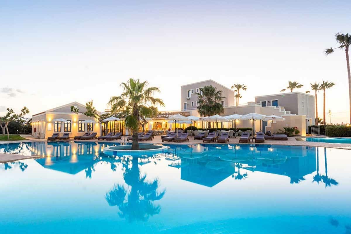 Situé à Pigianos Kampos, 7 km du centre de Rethymnon, 74 km des aéroports de La Chanée et d'Héraklion. Plage non aménagée en face de l'hôtel (petite route à traverser) ; grande plage de sable aménagée de Scaleta à 5 km (navettes aller/retour gratuites depuis l'hôtel).