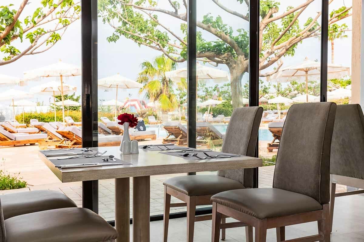 Le restaurant principal (buffets, show-cooking), soirées à thème (grec, italien...), un bar à la piscine. Tenue correcte au diner. Plats pour régimes spéciaux sur demande. Azul Beach bar sur la plage de Scaleta de 10h à 18h (service de navette gratuite).