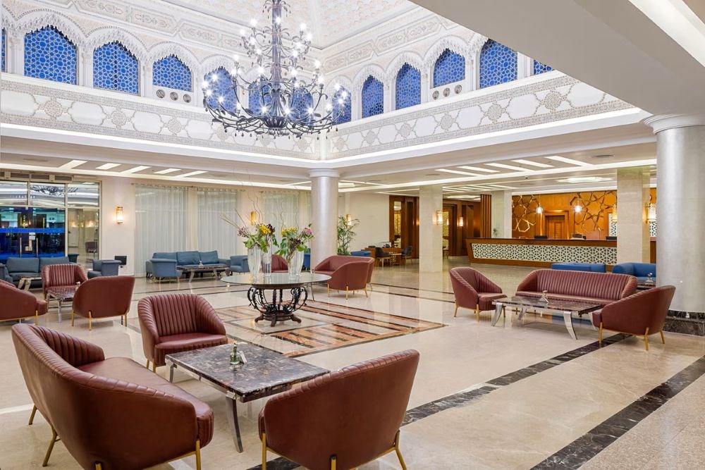 L’hôtel dispose de 296 chambres, toutes réparties dans un bâtiment principal de 3 étages.• Pour votre confort : réception ouverte 24h/24, boutique de souvenirs, service de blanchisserie, parking, service de change, médecin de garde (avec supplément).