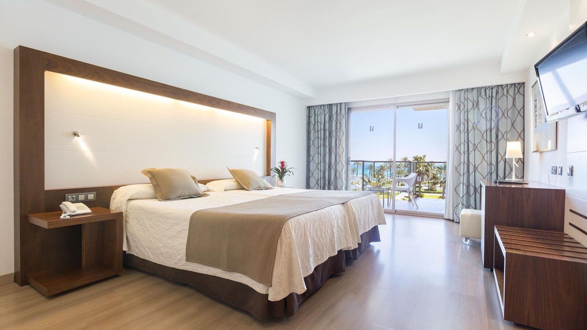 Parmi les 205 chambres, on distingue des chambres doubles standards (25 m²), des chambres doubles avec vue latérale sur la mer (25 m²), des chambres doubles avec vue frontale sur la mer (25 m²) et des suites junior avec vue sur la mer (44 m²). Toutes sont équipées d’une télévision à écran plat, d’un coffre-fort, de la climatisation, d’une connexion Wi-Fi gratuite et d’un balcon meublé. Les salles de bains disposent d’une baignoire ou d’une douche, d’un sèche-cheveux, de produits d’accueil et d’un miroir grossissant.