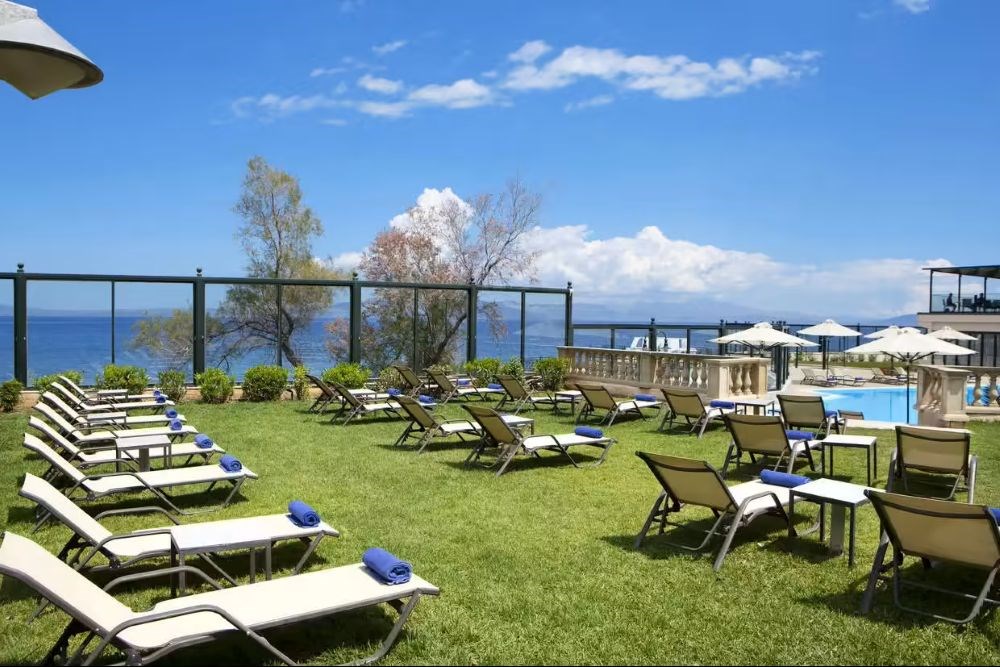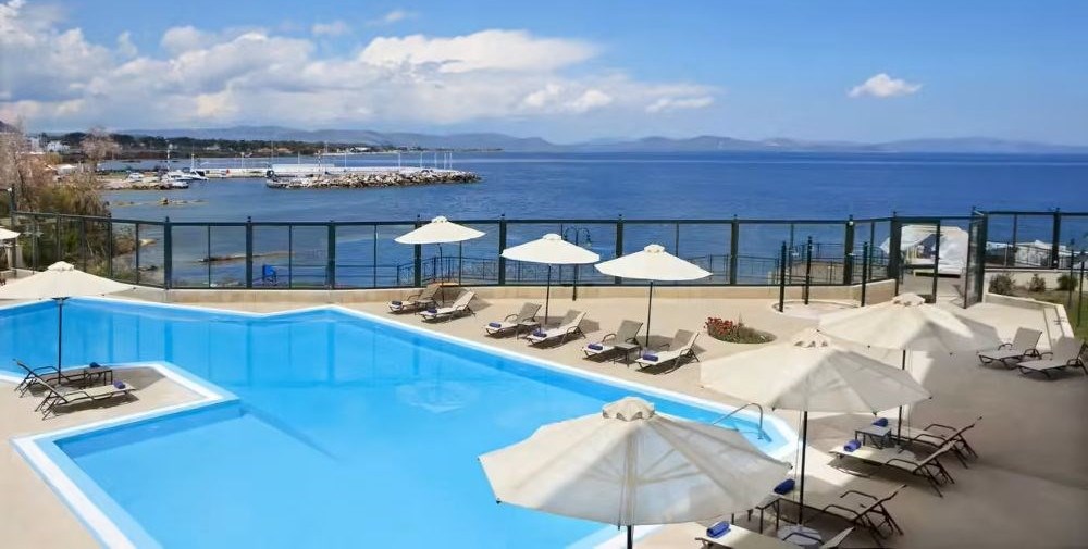 - Accès direct à la mer au pied de l'hôtel sur rochers/galets. Pour une baignade plus aisée : plages publiques (sable & galets) à Mati – 500 m et Kokkino Limanaki – 1,5 km — chaussures d'eau recommandées.