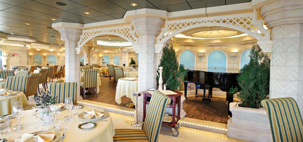 Le restaurant Villa Verde, à la poupe du navire, offre un panorama extraordinaire qui a inspiré le thème de la transparence et de la lumière utilisé dans la décoration du restaurant. Ce restaurant propose un menu méditerranéen varié, y compris des choix légers toujours disponibles pour satisfaire ceux qui savent ce qu'ils veulent chaque jour.