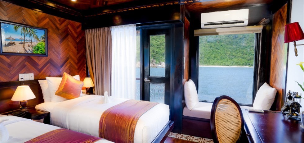 Les cabines, spacieuses et confortables, sont réparties sur quatre ponts et sont toutes extérieures. Au pont Principal, les 8 cabines d’une surface de 20 m² disposent de deux hublots (non ouvrables). Les 16 cabines Deluxe du pont Supérieur et les 14 cabines Deluxe du pont Panorama d’une surface de 20 m² sont équipées d’une fenêtre et d’une large baie vitrée ouvrant sur un petit balcon. Le pont Soleil est constitué de 6 Junior Suites d’une surface de 26 m² avec fenêtre et large baie vitrée ouvrant sur un petit balcon, et de 2 Suites Terrasse de 41 m² avec fenêtre, large baie vitrée et terrasse privative. Toutes les cabines sont climatisées et équipées d’une armoire, d’un bureau, d’un mini-bar, d’un coffre-fort, d’un sèche-cheveux, et d’un téléphone (intérieur). Aux ponts Principal, Supérieur, Panorama, les cabines Deluxe sont équipées de lits jumeaux pouvant être rapprochés, et disposent d’une salle d’eau avec douche et WC. Les Suites du pont Soleil sont équipées d’un lit king size et d’un canapé, ainsi que d’une salle de bain avec douche séparée et bain bouillonnant.